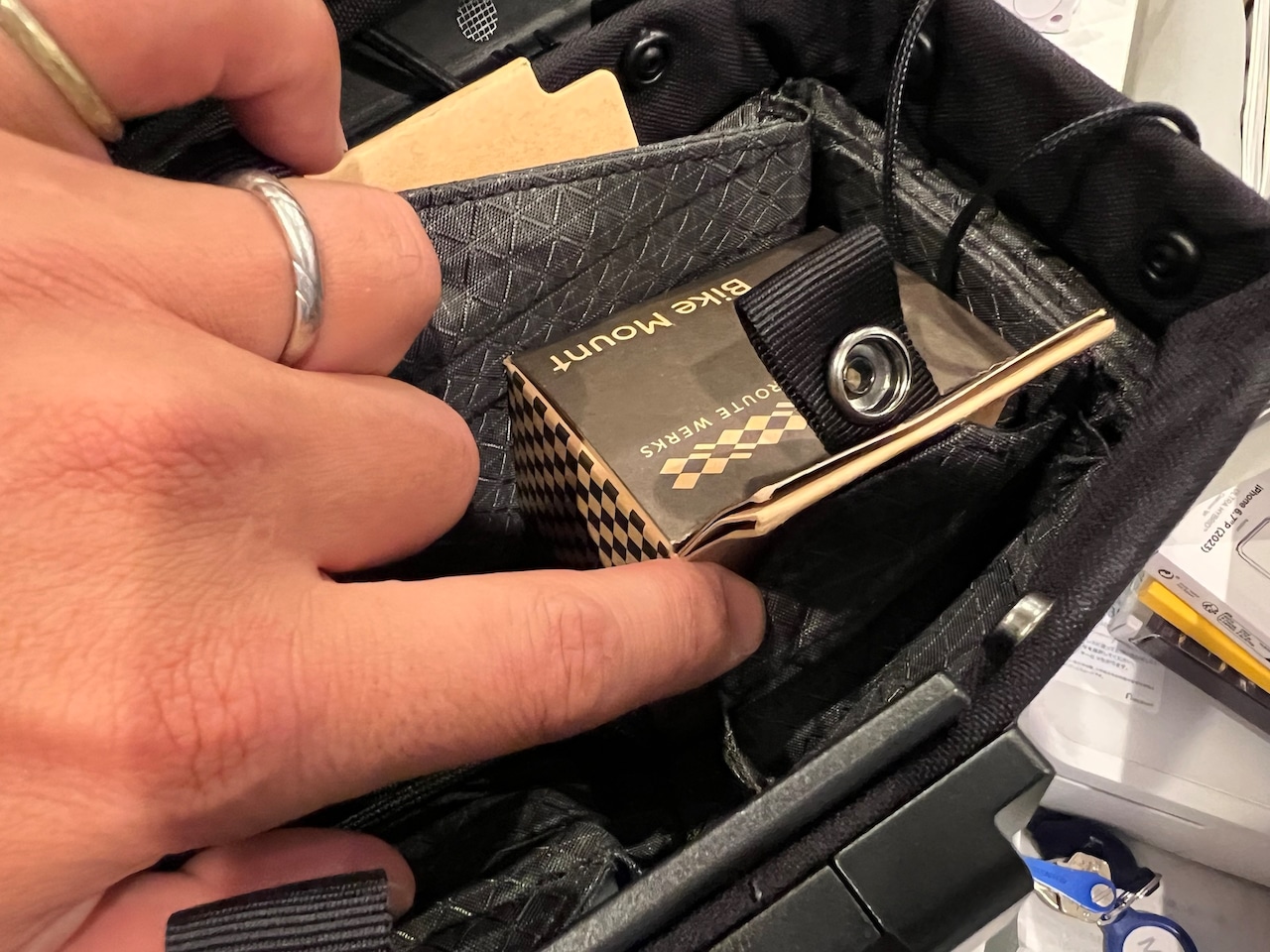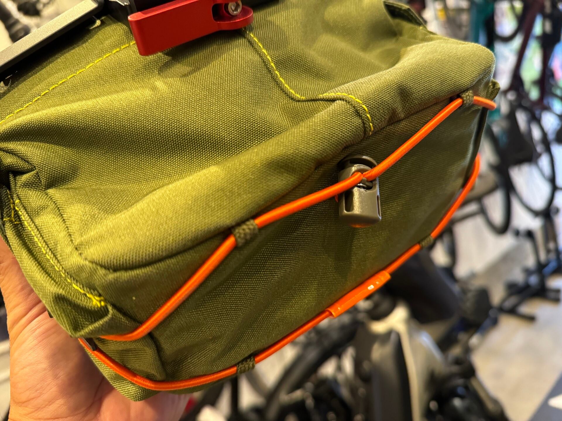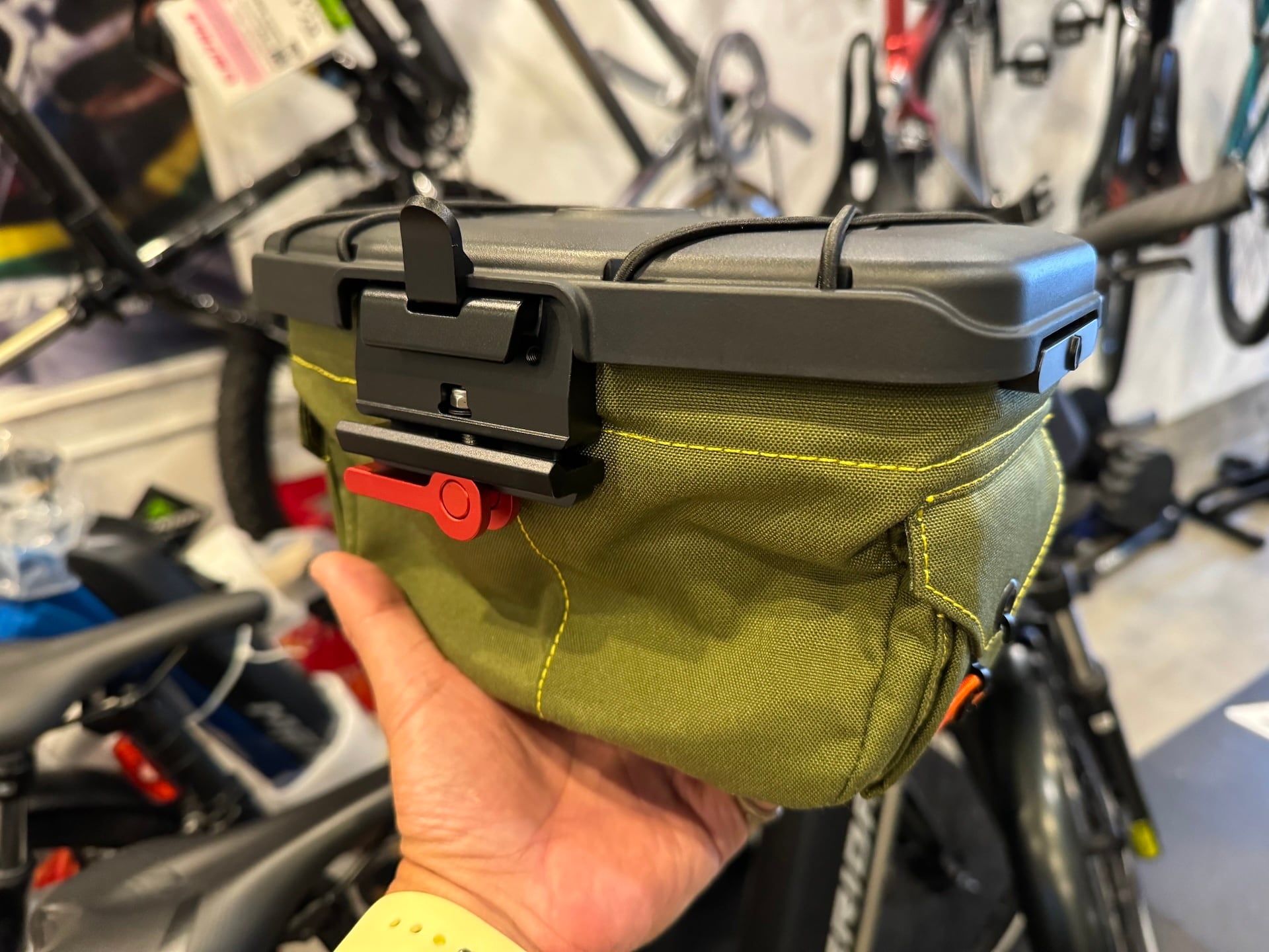 軽いワンタッチアクションで開閉可能なリッドによりバッグの中身へのアクセスは容易。ライド中のオヤツや撮りたいシーンに出くわしたときのカメラなど、必要な時にさっと取り出せます。